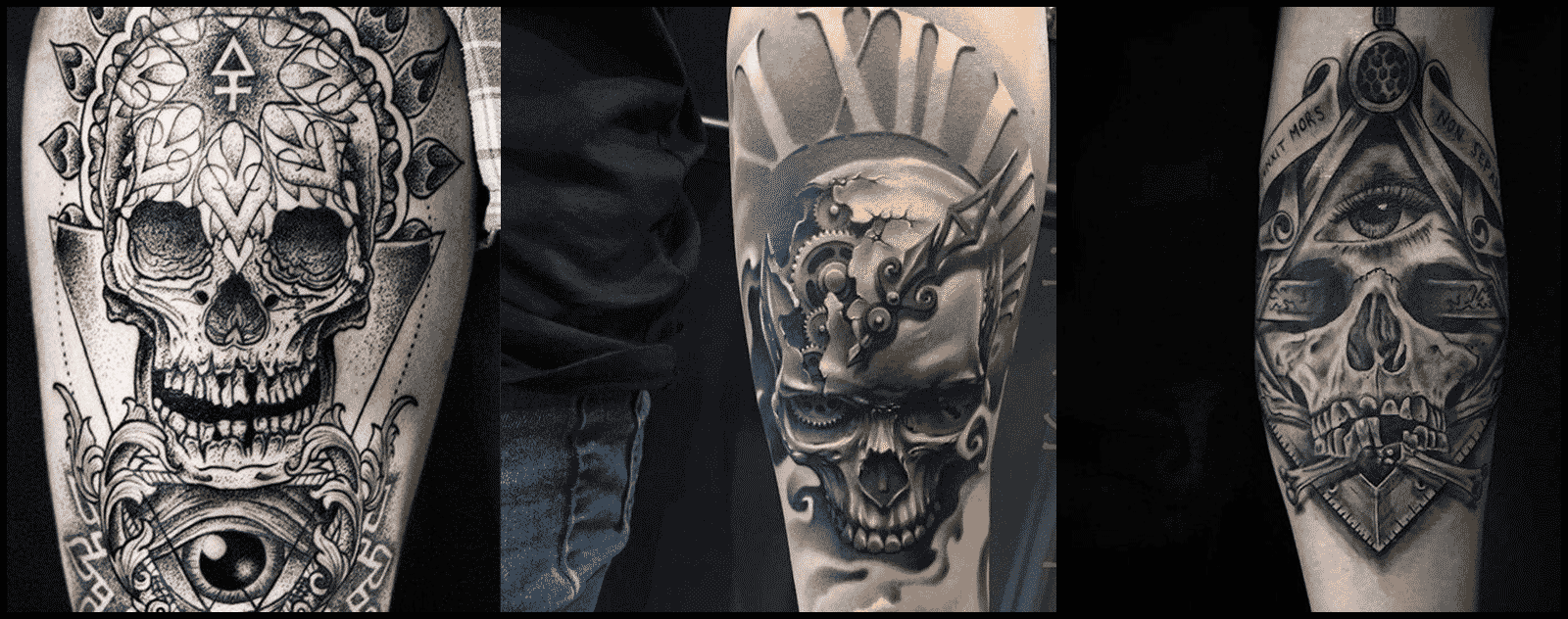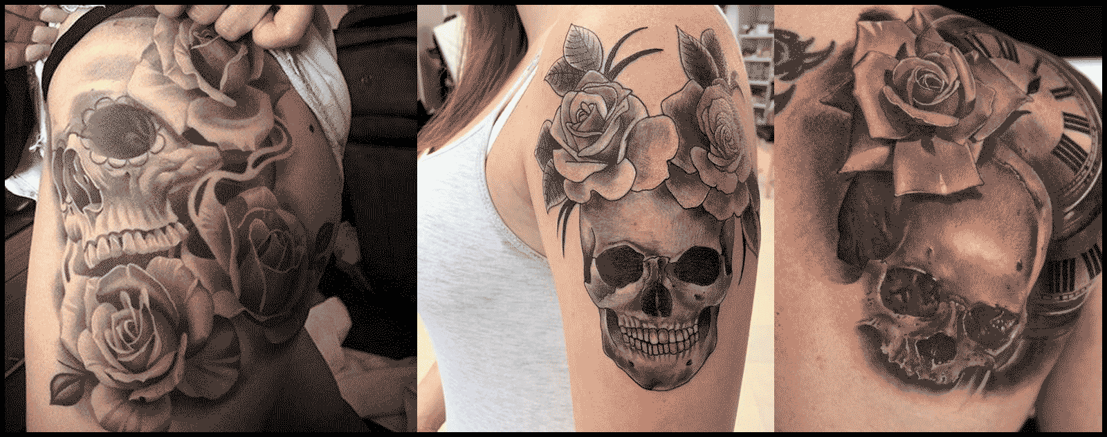 Nous allons explorer ci-dessous certains des tatouages de crâne les plus courants et leur signification. Si vous souhaitez en savoir plus sur les différents motifs de crânes et sur la façon dont ils peuvent être intégrés dans le tatouage qui vous convient le mieux, appelez-nous ou envoyez-nous un message. Et si vous vous trouvez dans la région de Toronto, Markham, Mississauga, Kitsilano Vancouver, arrêtez-vous dans l'un de nos salons de tatouage bien situés. Nous serons ravis de vous accueillir.